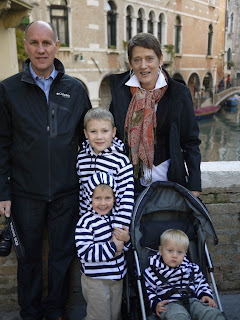 Chris' parents came to visit for Luke's two week fall break. Since the kids here get an abbreviated summer schedule (five weeks of vaca), they are supplemented with additional two-week breaks in October, December, and February. So, we packed all seven of us, our luggage, and the stroller (smash, smash) into the Volvo XC 90, and off we barreled to our favorite European country (well, so far). Lookout, Italy! Overall, I prefer the United States's long summer schedule, but in this case an October break proved to be a PERFECT time to visit a city I've always wanted to see. Venice. No roads. No cars. Only canals, alleys, boats, and people-people-people. We lucked out with amazing weather, and were very grateful to not smell our way (as we have been told is the case in the hot summer months) through the narrow alleys.